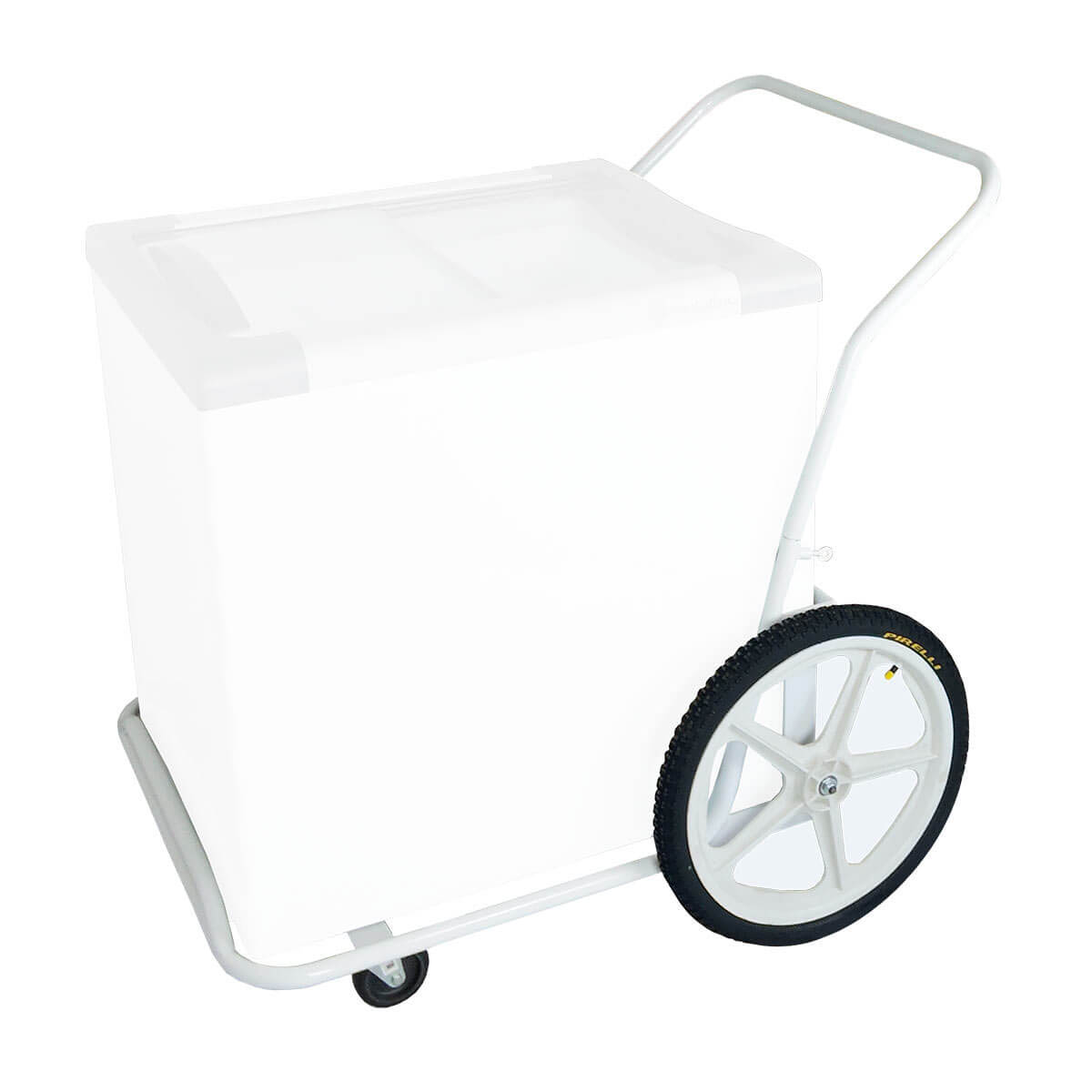 Sua tampa larga de poliestireno também vem a ser outro diferencial, já que promove ao vendedor um grande ângulo de captação, assim como ao cliente, que pode enxergar todos os sabores e produtos através de uma breve olhada no interior do carrinho.